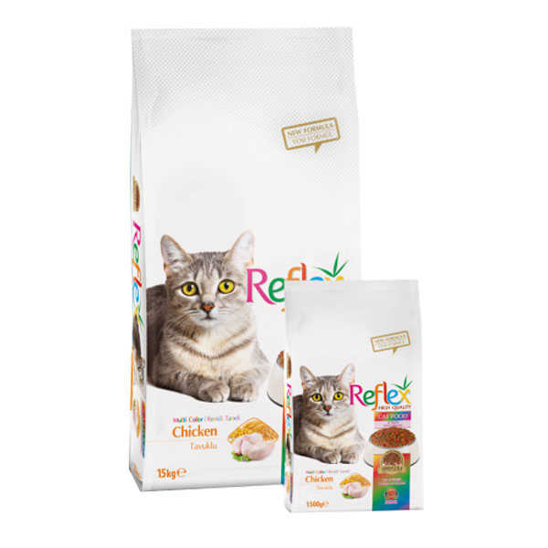reflex 15 kg multicolor adult cat food tavuklu renkli fiyati